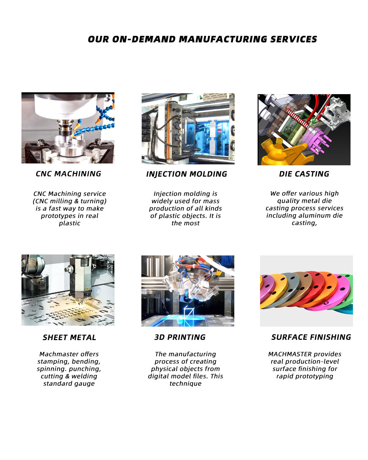 Our main business is CNC machining, injection moulding and stamping parts. With advanced CNC machining centres, engraving and drilling machines, lathes and milling machines, wire cutting and other equipment. With extensive machining experience, we are able to make repeatable positioning accuracy within 0.005 mm tolerance, providing a strong guarantee for precision parts. Our goal is to create reliable, viable and affordable tooling, CNC machined parts and fast prototype service for every industry. Based on our precise machining, competitive costs and satisfactory customer service, we have exported our products to many countries.